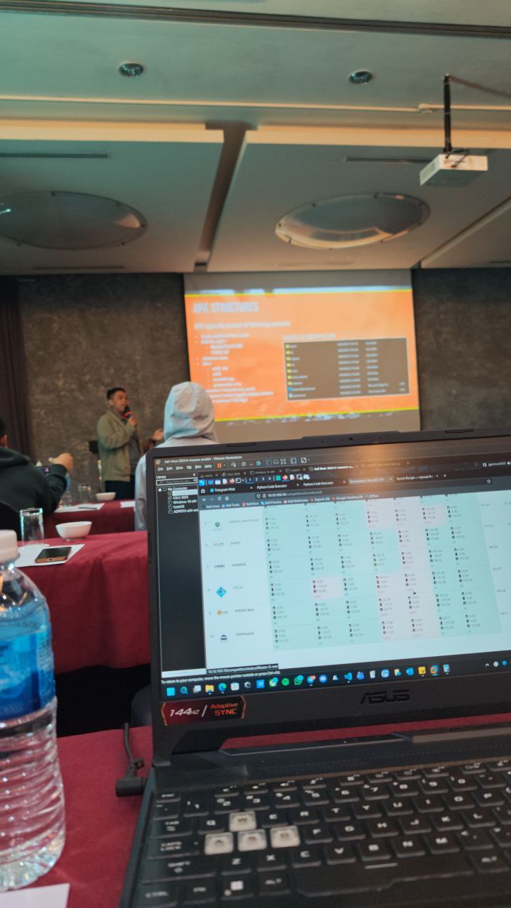 Then, the night came, and our first session was about bug bounty in web and web3. It was an interesting session as I’ve only heard about bug bounty in YouTube videos, mostly about jailbreaking iPhones where they actually share the POC about the vulnerability. Things that I gained during this session was that now I know that I should set a persona of myself when working in cybersecurity as it helped a lot for them.